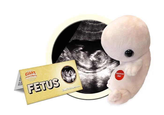 Squeeze the tummy of our fetus and see and hear its glowing little heart beat!