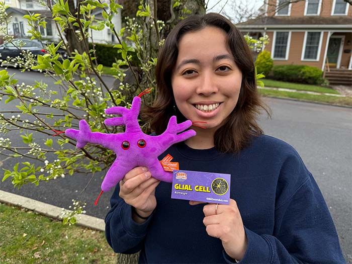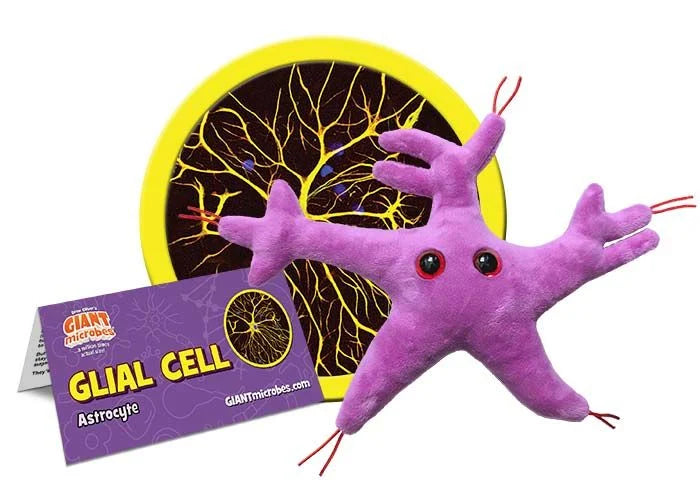 GIANTmicrobes Glial Cell plush celebrates the brain’s unsung heroes! While neurons get the attention, glial cells work behind the scenes, nourishing neurons, clearing debris, and insulating nerve fibers for smooth brain function. Without them, signals would misfire, and the nervous system would be in chaos!